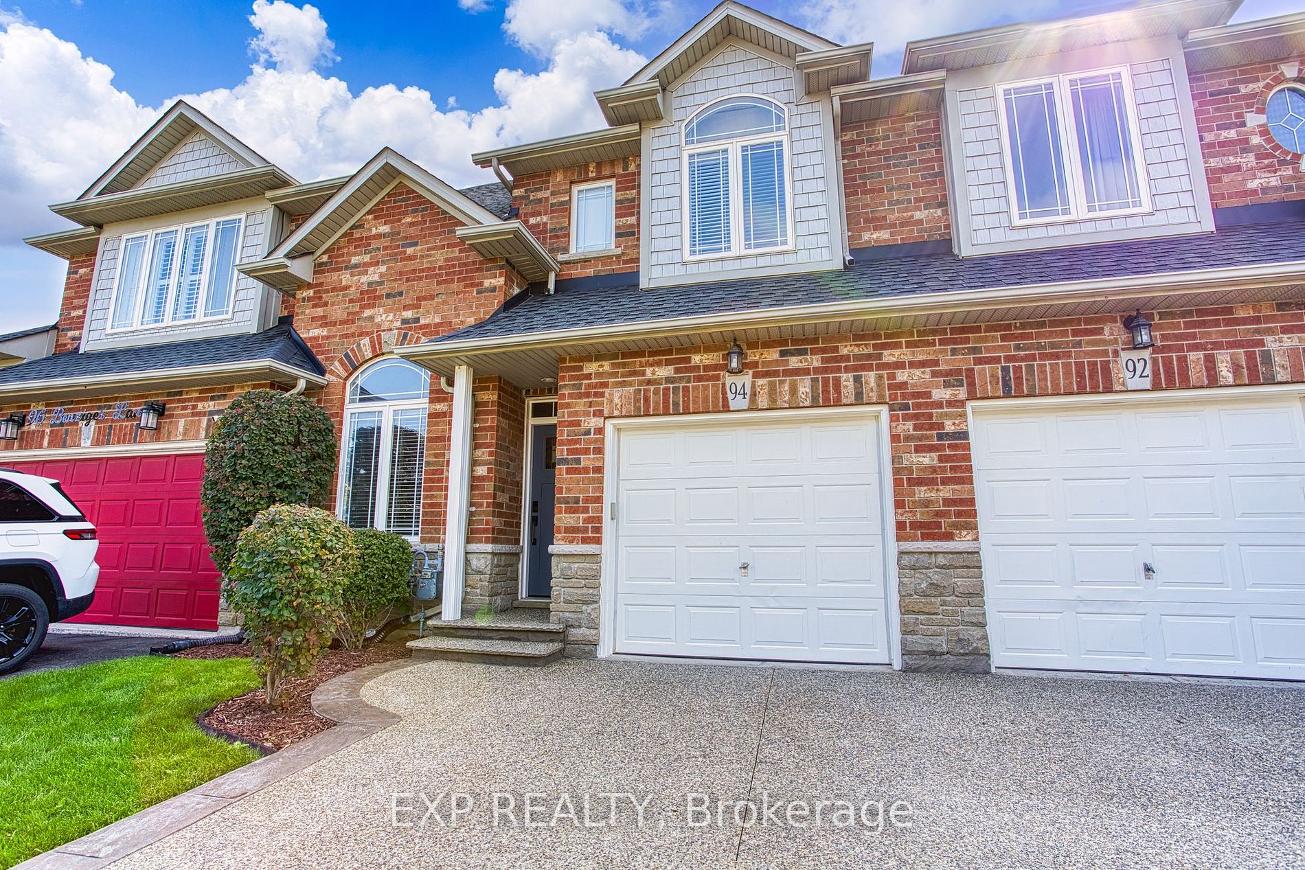 Welcome to 94 Benziger Lane, a stunning freehold townhome with over 2,000 sq. ft. of living space in the sought-after Winona area, where modern finishes and comfort come together to create the perfect sanctuary. You will immediately be taken by the homes impressive curb appeal with a newly paved concrete driveway and walkways (2022), a new front door (2022), and stunning landscaping. Features include: 3 spacious bedrooms (two with walk-in closets), 3 bathrooms (4pc & 2 x 2pc, with space for a master ensuite), a custom-finished basement, 2nd-floor laundry, and a versatile main-floor office that can also serve as a dining room or additional bedroom. The interior boasts custom finishes throughout including 9 ceilings, hardwood flooring, quartz countertops, coffered ceilings, pot lights, and stainless-steel appliances. The basement adds an additional living room, powder room and office space, creating a cozy and inviting atmosphere. The home is meticulously kept with all major updates performed (A/C 2023, furnace 2021, water heater 2022, Roof 2018). Venture outside to discover the expansive multi-level deck and pergola in the backyard with concrete paths leading from the garage to the backyard. This outdoor oasis is perfect for relaxing or entertaining guests. The custom deck (upper section replaced in 2023, lower section built in 2020) overlooks a beautifully landscaped yard, providing a serene backdrop for all your outdoor activities. The family-friendly neighborhood offers ideal proximity to schools, Winona Park, Winona Crossing shopping district, 50 Point conservation area, bus routes, and Go transit. 94 Benziger Lane is move-in ready, designed to provide a seamless living experience and must be seen!